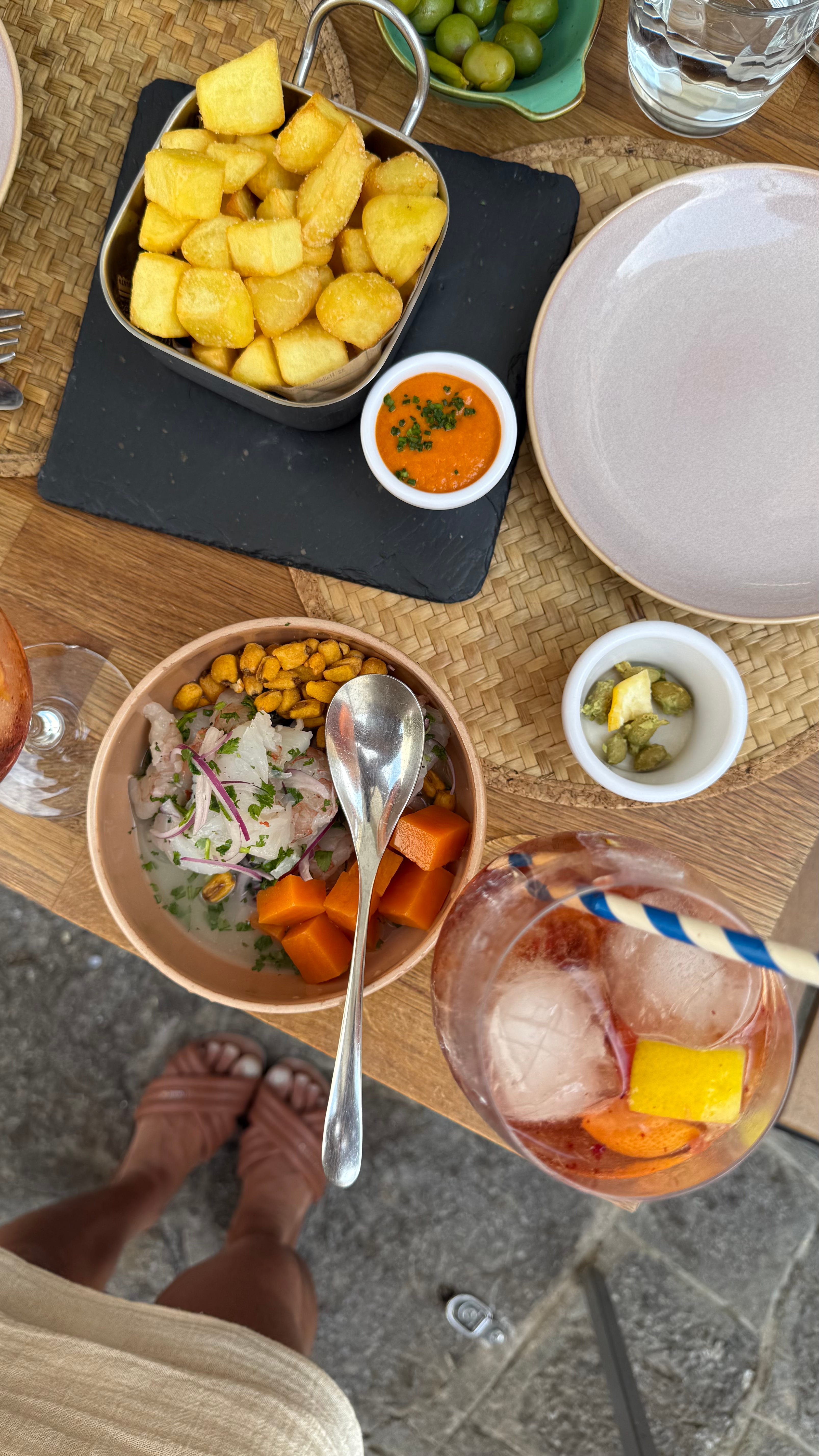 A glass of cava here and maybe a small glass of rośe there. Truthfully, I do love good wine and miss it, but I do not like the feeling of being buzzed at all and much less, I never, ever want to let the former day effect my next so I can’t typically even finish one drink however, on my three week stint in Europe I did intend to have a drink or two to celebrate life. I actually intended to have an aperol spritz, which never happened, but I was reminded of just how much I love and miss sangria after that first one. More watery and fruity than wine, I can drink it easier because it’s not so concentrated.